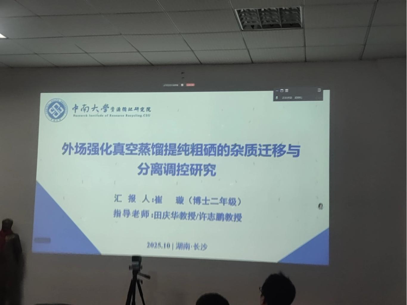 在专题报告环节,四位博士研究生围绕真空蒸馏技术在不同金属体系中的研究作了系统汇报。