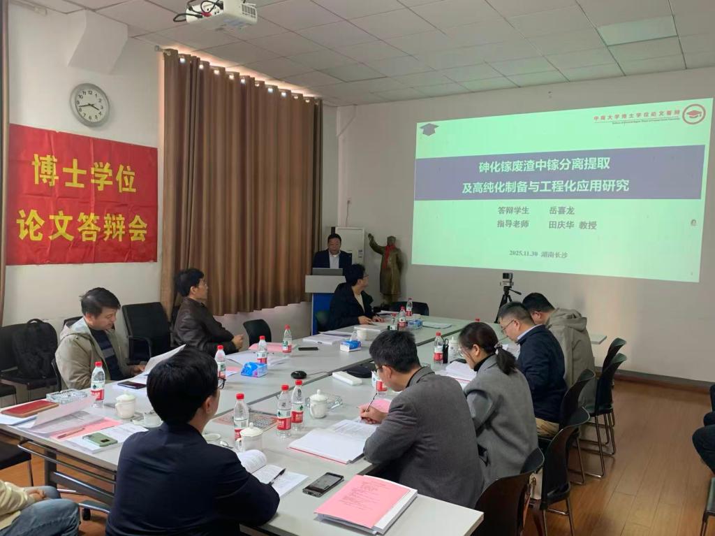11月30日下午,研究院工程博士董准勤与岳喜龙的博士学位论文答辩会在资源楼218会议室举行。本次答辩会特邀来自湖南师范大学、长沙矿冶研究院、长沙有色设计院及中南大学的专家学者担任答辩委员会专家,答辩委员会由杨建广教授、刘芳洋教授、陈湘萍教授、雷湘正高级工程师、王明正高级工程师、李栋教授、许志鹏教授以及乔晋玺博士后组成。