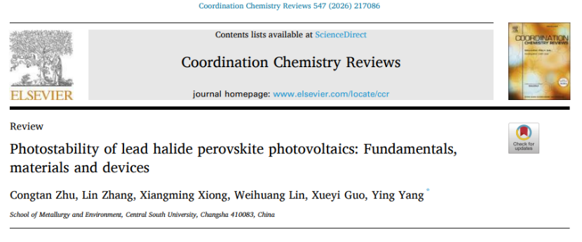 近日,研究院太阳能团队在国际知名期刊《Coordination Chemistry Reviews》(IF=23.5)上发表题为“Photostability of lead halide perovskite photovoltaics: Fundamentals, materials and devices”的综述论文,系统阐述了钙钛矿光伏的光稳定性的衰减理论机制、材料/界面稳定性策略,以及最新研究进展。